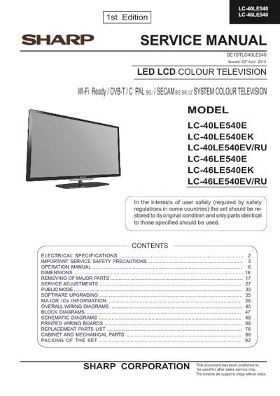Currently you are looking for an Sharp Lc 40le540e Led Lcd Tv Service Manual example of which we provide here inside some kind of document formats many of these as PDF, Doc, Power Point, and in addition images of which will make it easier for you to create an Sharp Lc 40le540e Led Lcd Tv Service Manual yourself. For a better look, you may open a few examples below. All of the illustrations about Sharp Lc 40le540e Led Lcd Tv Service Manual on this site, we get from a number of sources so you can create a better record of your own.