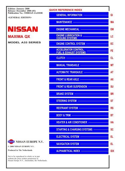 At present you are looking regarding an 2000 Maxima A33 Service And Repair Manual example that we provide here in some type of document formats such as PDF, Doc, Energy Point, and in addition images that will make it simpler for you to create an 2000 Maxima A33 Service And Repair Manual yourself. For a clearer look, you may open some examples below. Each of the illustrations about 2000 Maxima A33 Service And Repair Manual on this website, we get from a number of sources so you may create a better file of your own.